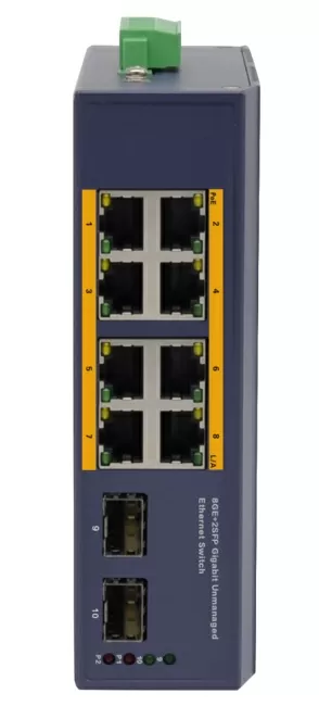 Промышленный неуправляемый коммутатор BOUZ, 8 портов 10/100/1000Base-T, 2 порта 1000Base-X SFP