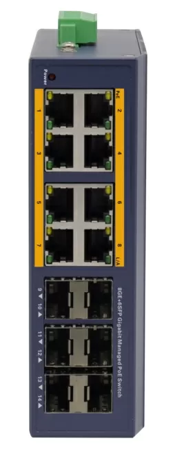 Промышленный управляемый коммутатор BOUZ L2, 8 портов PoE 10/100/1000Base-T, 6 портов 1000Base-X SFP