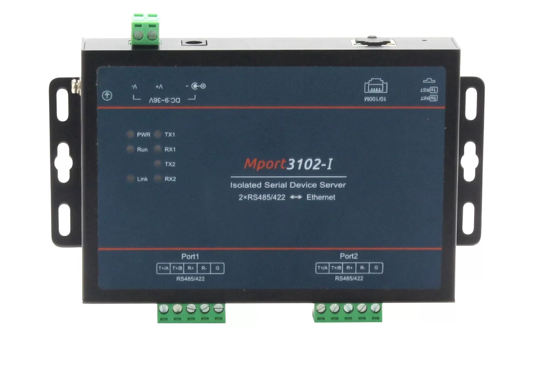 - Один медный порт 100M Ethernet, 2 порта RS-422/485 в Ethernet с изоляцией 1,5 кВ