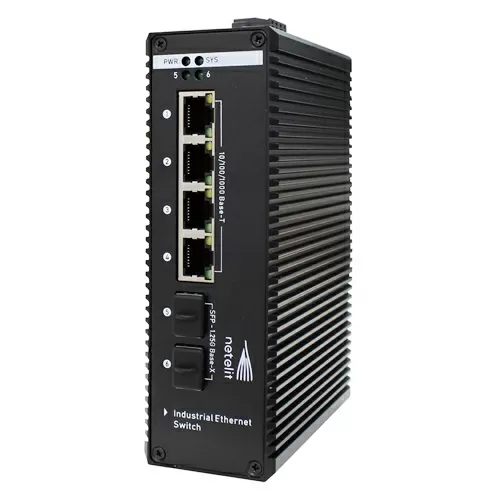 Промышленный управляемый коммутатор NETELIT, L2, 4 порта 10/100/1000Base-T, 2 порта 100/1000Base-X SFP