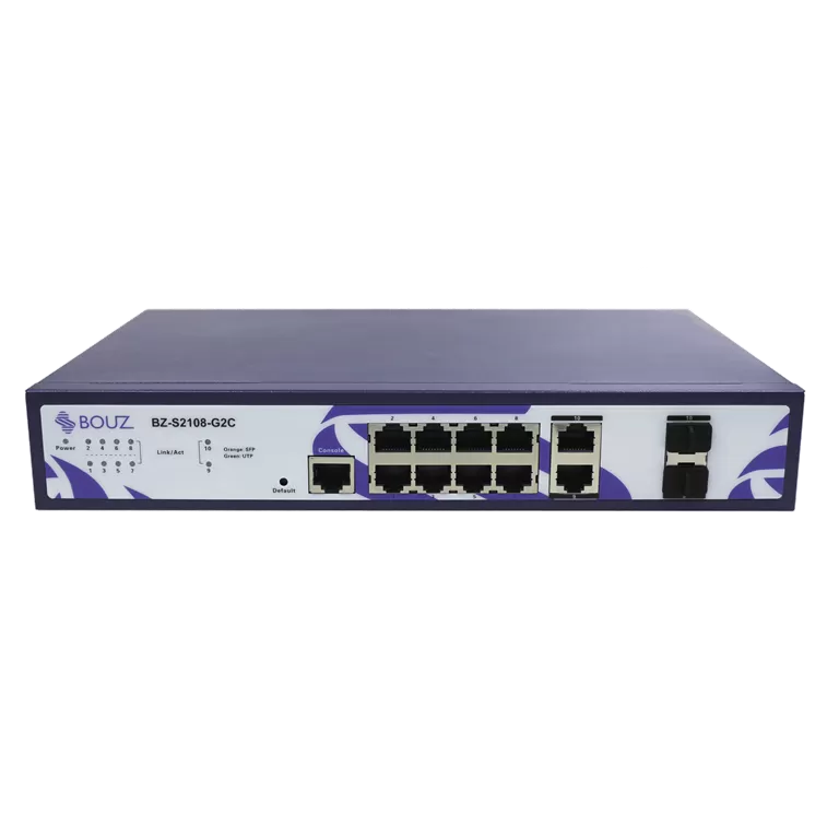 Управляемый коммутатор BOUZ, L2, 8 портов 10/100/1000Base-T, 2 порта комбо 10/100/1000BaseT|100/1000BaseX